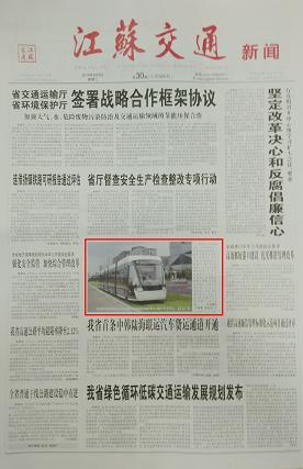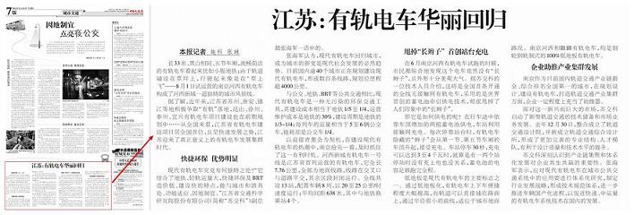 江苏:有轨电车华丽回归《中国交通报》2014年8.14第7版城市交通版面刊出